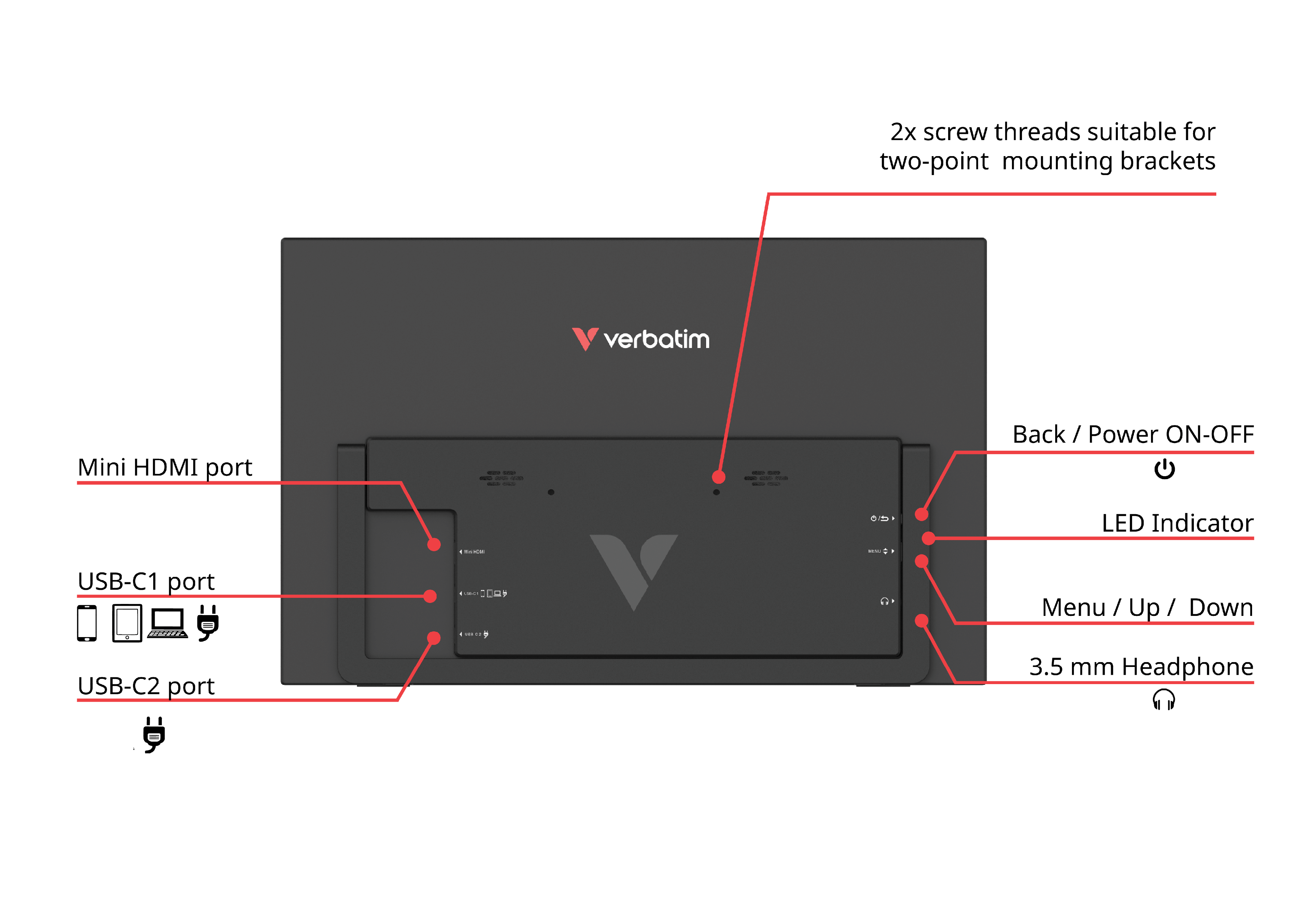 VERBATIM 32405 Portable Touchscreen Monitor 14 Full HD 1080p Light